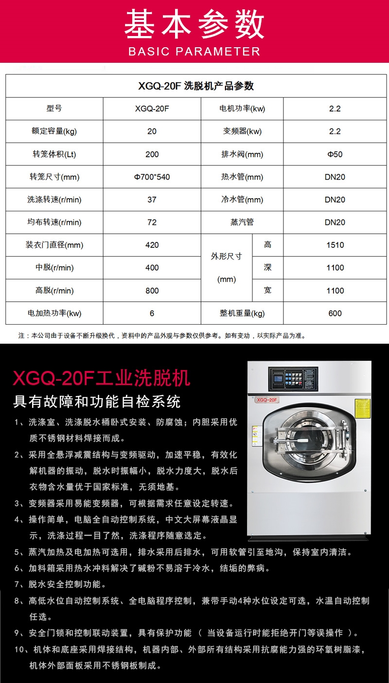 20公斤工業洗衣機洗衣房設備洗脫機水洗機